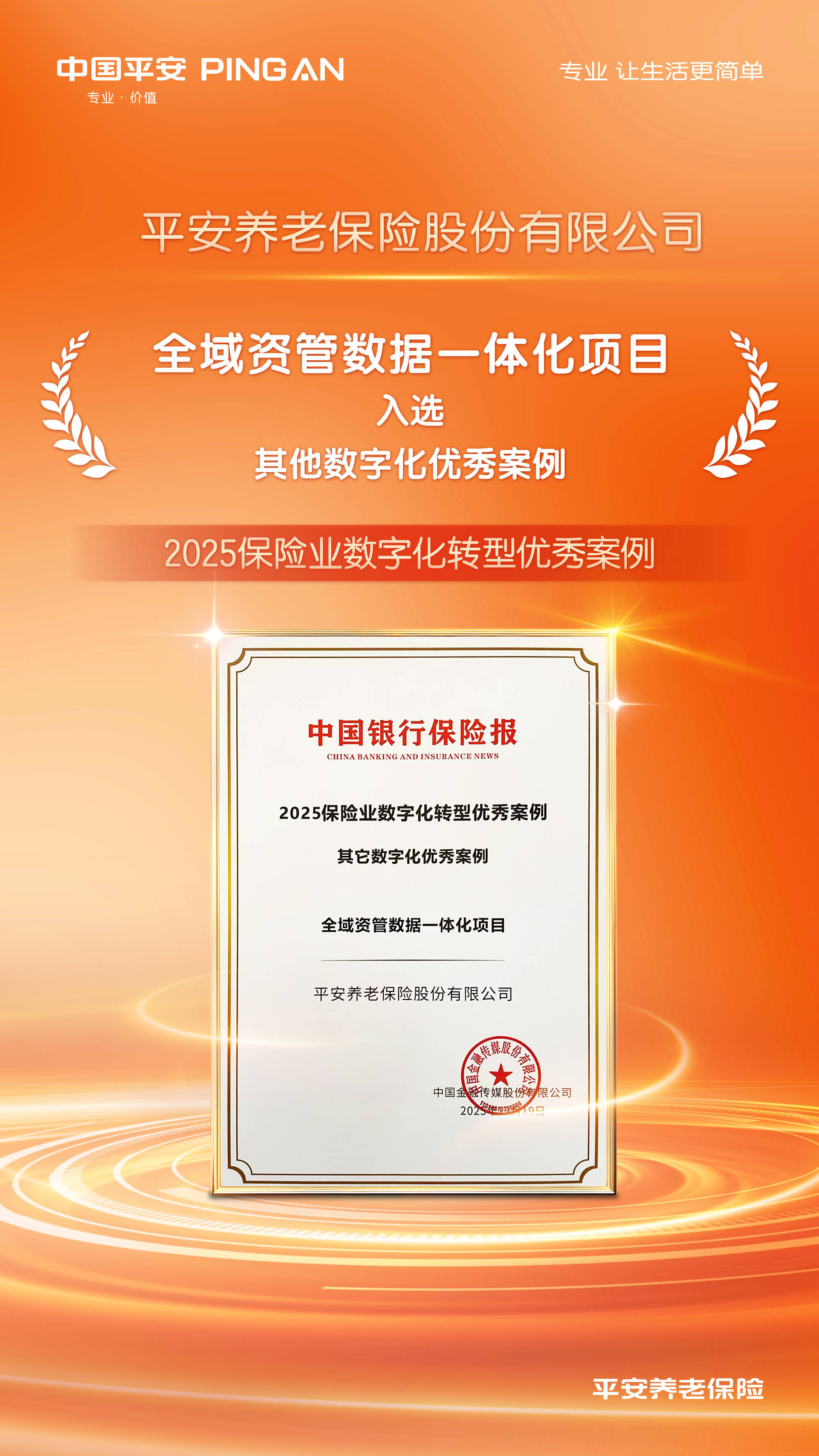 平安养老险“全域资管数据一体化项目”入选“2025保险业数字化转型案例精编”