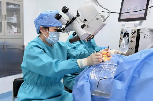 手术中,团队先进行白内障超声乳化联合人工晶体植入,再通过同一微小切口精准植入海卓思引流器,全程出血极少,创伤轻微,一次操作同步解决青光眼与白内障两大眼部问题。
