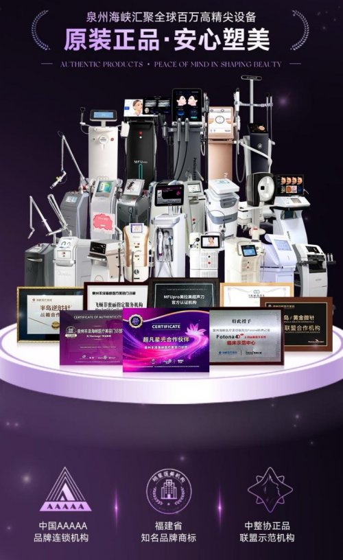 泉州海峡整形始终秉持“懂美,更懂你”的理念,持续引进并成熟应用索塔Thermage超玛吉5.0、半岛大超炮、艾维岚再生材料等前沿技术与设备,构建覆盖轮廓、肤质、抗衰的立体化诊疗体系。作为福建省知名品牌商标、中国AAAAA医疗美容医院品牌连锁机构及中国整形美容协会泉州市正品联盟示范机构,我院以专业与安全为基,持续为求美者提供安心、有效的品质医美服务。