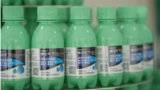 胡鉴:个别有效果,但是成本太高,就是做出来了农民接受不了。2019年开始转变,转变以后我们就大量的做实验,就是从拌到喷不停的做,确实发现功能功效就出来了。出来以后,在2019年的6月份,这个产品叫菌安天下。现在你看菌安天下在全国很知名,在行业内没人不知道,就是叫一瓶活菌安天下,缩写成菌安天下,就是只有活菌活着才有代谢物,只有代谢物才能解决作物的功能功效。